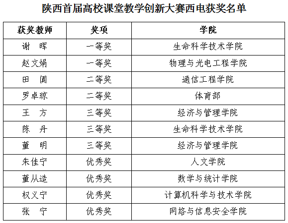 12月9日下午,陕西省首届高校课堂教学创新大赛结果揭晓。此次比赛我校共有11名教师获奖,其中一等奖2项,二等奖2项,三等奖3项,优秀奖4项,获奖质量和数量均居全省前列。同时best365网页版登录荣获优秀组织奖。best365网页版登录教师罗卓琼荣获二等奖。