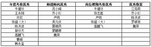 2016年,在best365网页版登录全体成员的共同努力下,部门工作有了很大发展。总结回顾过去一年来教职员工们兢兢业业的付出和成绩,best365网页版登录经民主程序评选出年度考核优秀、师德师风优秀、优秀教案和岗位聘期(2014-2016)考核优秀四类共26人次优秀教职员工。新的一年,希望best365网页版登录全体教职员工共同努力、再接再厉,做出更大的成绩。
