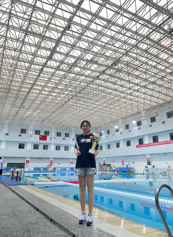 孟欣雨在取得夺目的竞赛成绩之外,依然坚守研究生本职,认真钻研专业知识,刻苦学习,各门专业课成绩均达到优秀,荣获校级一等学业奖学金,并获“优秀研究生”称号。还考取了国家初级游泳教练员证、现代五项国家一级裁判员证两项国家级证书。