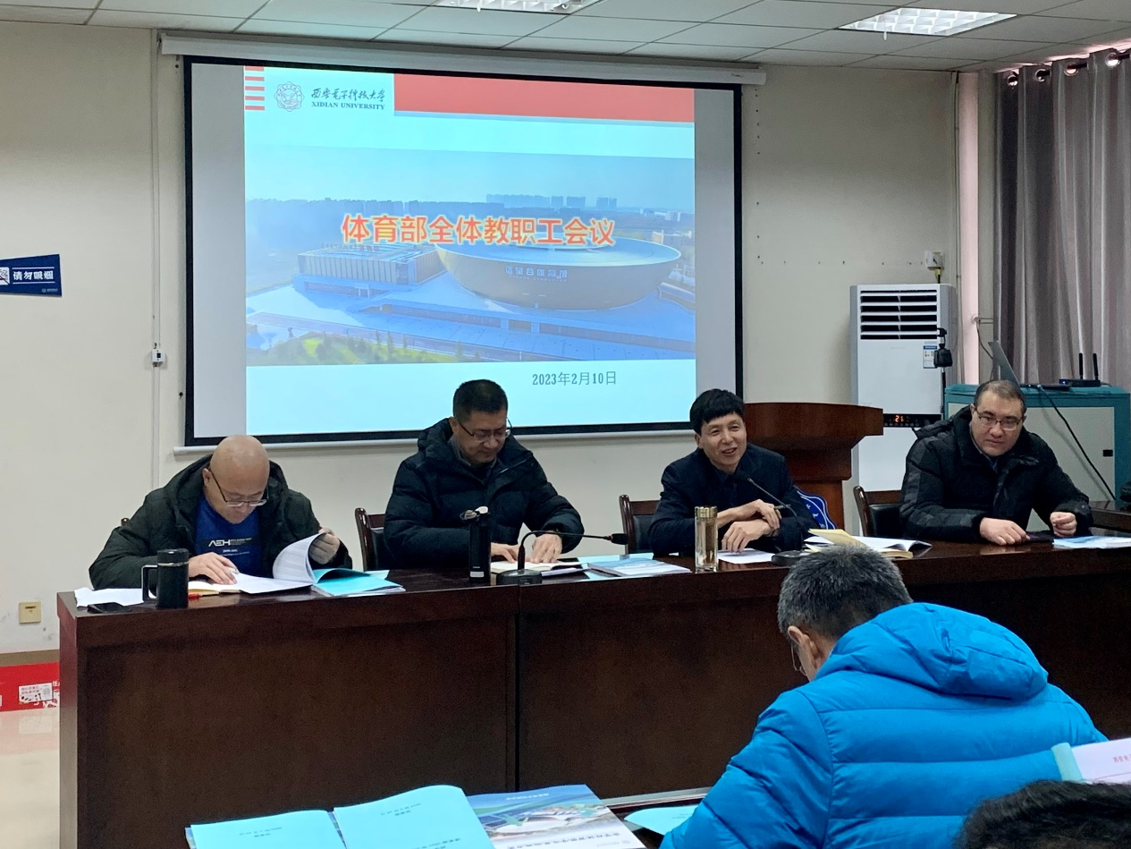 白光斌介绍了本学期教学新要求,因感染新冠病毒后学生身体素质受到影响,体育教学的开展面临新情况、新挑战,本学期将适当降低体能测试标准,并根据学生感染情况实行阶段性免修,同时推行课外锻炼多样化打卡模式。于少勇强调,在新冠病毒现实施乙类乙管政策的情形下,要秉持“安全第一”的原则,实行课前问询筛查、对感染学生差异性对待、循序渐进等策略,以安全稳妥的方式开展新形势下的体育教学任务。孔东通报了年度绩效分配情况、各类竞赛开展计划以及游泳池课时开放计划等。
