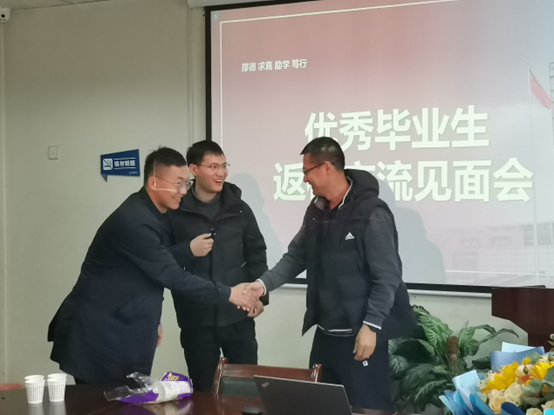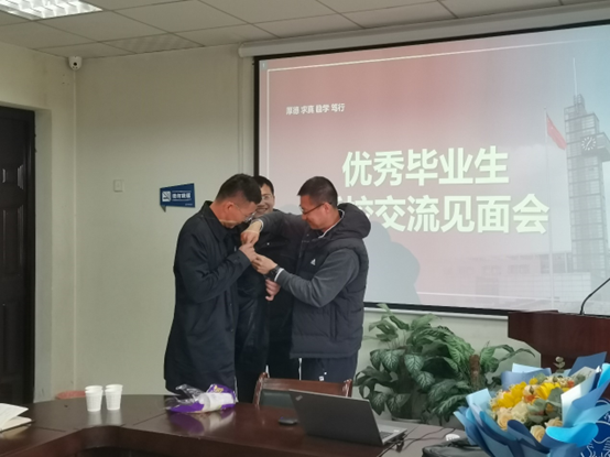 最后,张玉振书记代表best365网页版登录向两位优秀毕业生赠送校徽并合影留念。