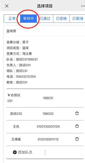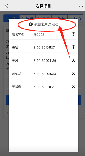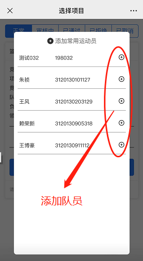 添加队员(先添加队员到常用联系人),如果添加常用联系人时,如果输入学号后没有显示队员姓名,则说明系统中没有该队员信息
