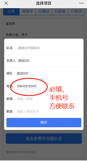 (3)创建参赛队前需要填写参赛队信息,主要是手机号,方便联系