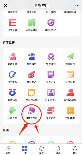 (1)使用学号,初始密码登录。进入程序首页,点击更多,进入群体竞赛“自建参赛队”