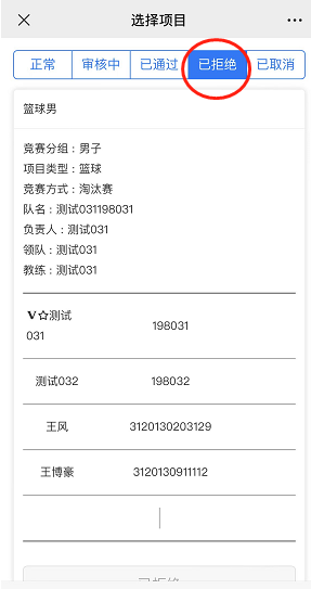 (3)报名完成后,点击选项卡,查看自己的报名情况。其中通过、拒绝由系统管理员审核。审核时间不定,请大家不要着急查看审核结果。