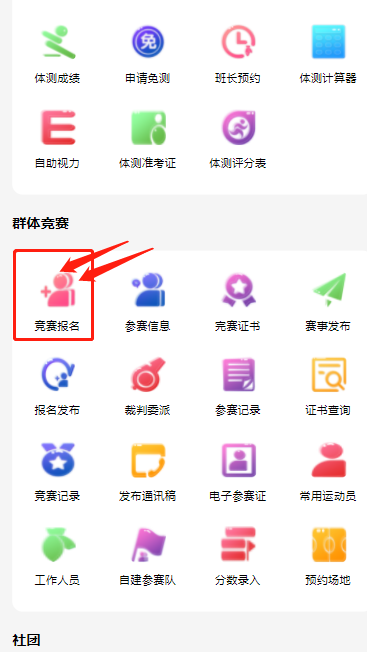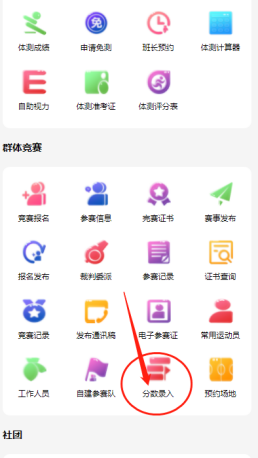 进入群体竞赛“分数录入”,选在参加的赛事: