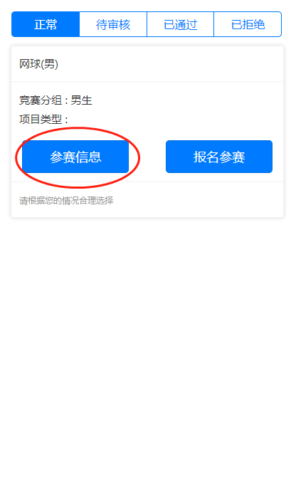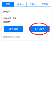 (3)填写参赛队信息,填写手机号,方便联系。网球为单人赛,报名即通过,无需系统管理员审核报名信息。