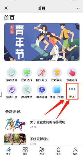 (1)使用学号,初始密码登录。进入程序首页,点击更多,进入群体竞赛“竞赛报名”