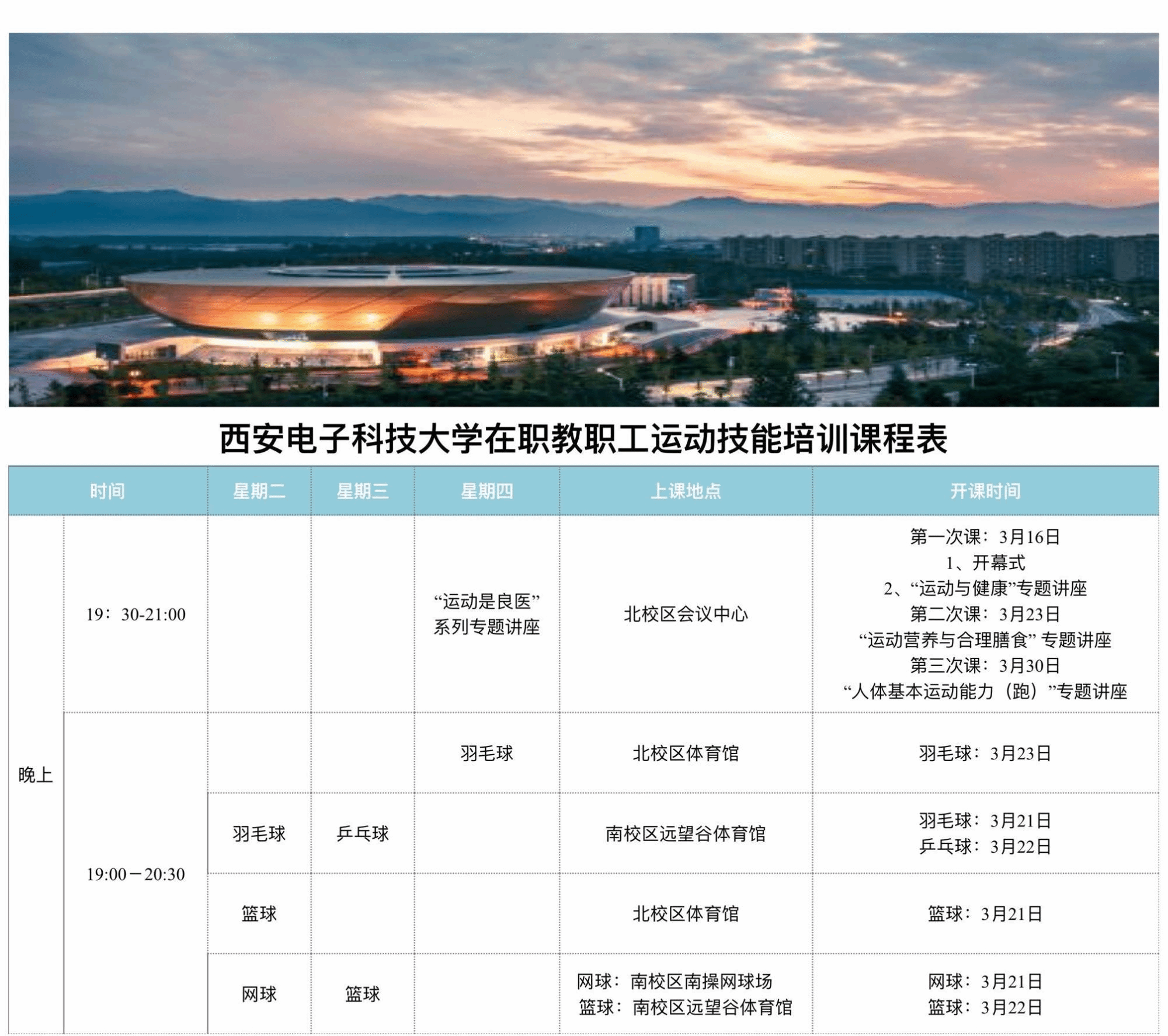 为促使我校教职工形成健康的生活方式,掌握运动技能,提升体质健康水平,best365网页版登录、党委教师工作部/人力资源部、校工会于2023年春季学期联手举办“运动是良医”best365网页版登录在职教职工运动技能培训班。
