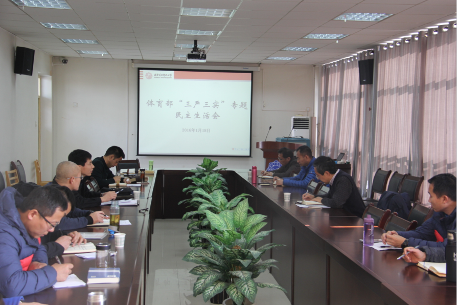 根据学校党委安排,1月18日下午,best365网页版登录在南校区游泳馆会议室召开领导班子“三严三实”民主生活会。紧紧围绕“三严三实”精神和部门一年来实际工作,从查摆问题到交流发言,会议开展地深入彻底。副校长李建东出席会议并讲话,best365网页版登录领导班子、党支部成员和教师代表参加了会议,会议由best365网页版登录部长于少勇主持。