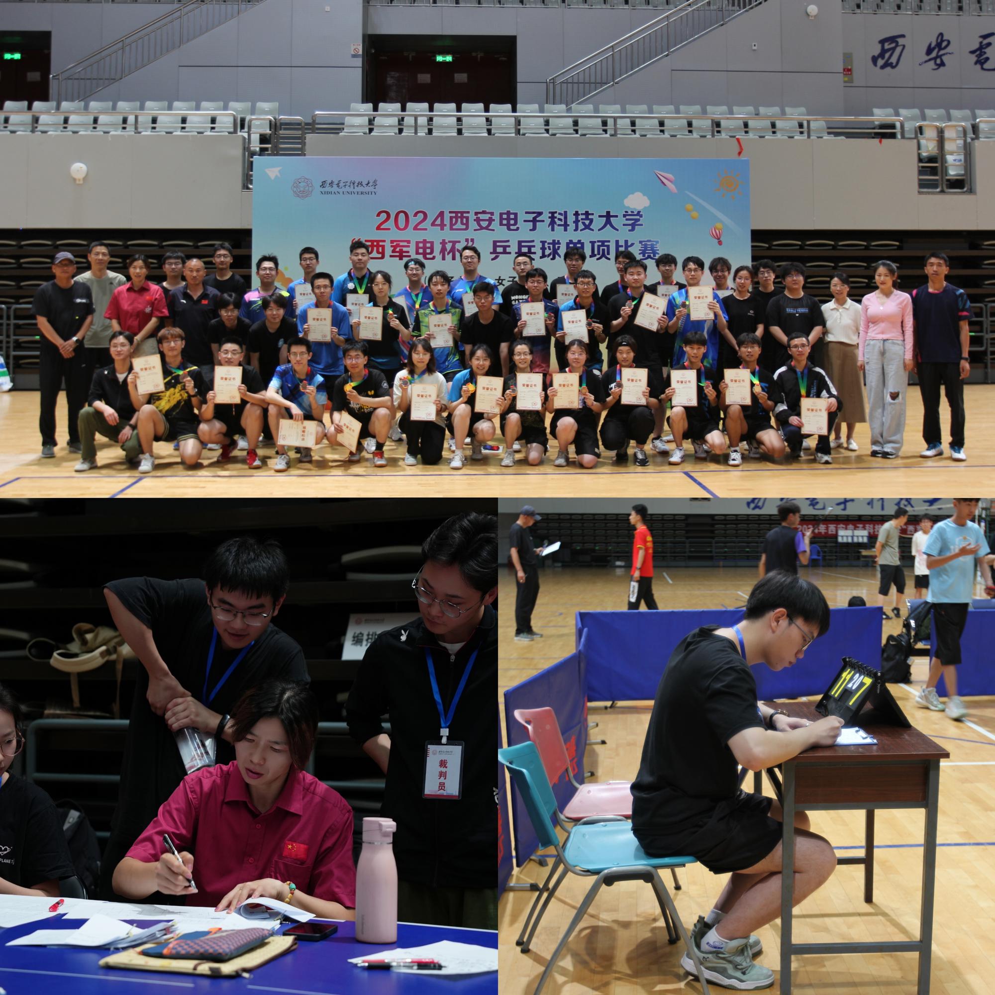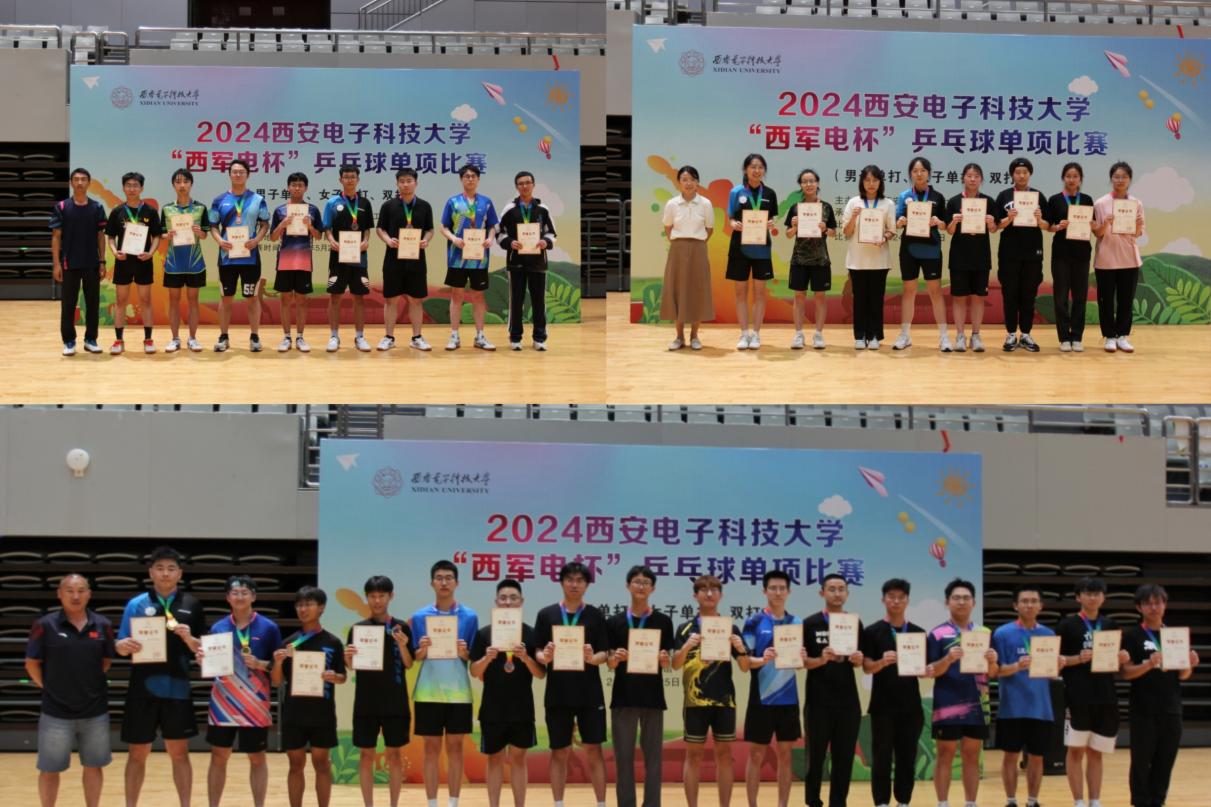 在本届“西军电杯”大学生乒乓球单项比赛中,运动健儿们切磋球技、互相交流、建立友谊,学生裁判员们一丝不苟、精益求精的执裁态度也为整个赛场添抹了另一道耀眼的色彩。最后,由颁奖嘉宾——best365网页版登录副部长张超老师、best365网页版登录群体办公室主任蒙鹏君老师,和西电教职工乒乓球俱乐部主要负责人王小芳老师,为男单、女单以及双打的前八名选手颁奖。这份荣誉不仅是对运动员们乒乓球技术的肯定,更是对他们身上所体现出的团结、尊重、公平、追求卓越、和平的运动精神的赞赏,这将激励着西电儿继续砥砺前行、踔厉奋发,在新时代的舞台上绽放青春的光芒!